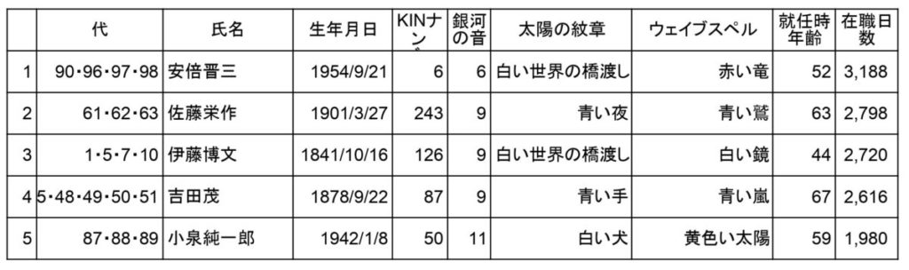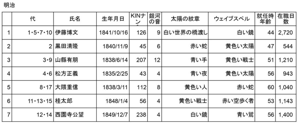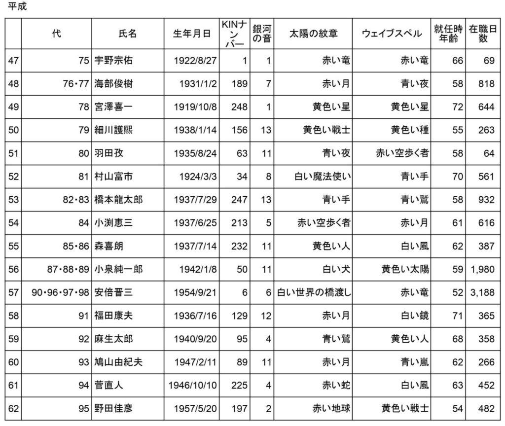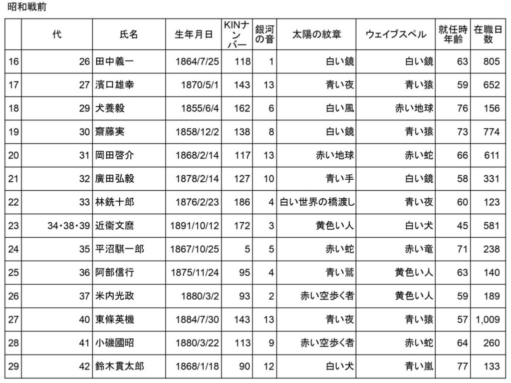 歴代総理の生年月日とKINナンバー