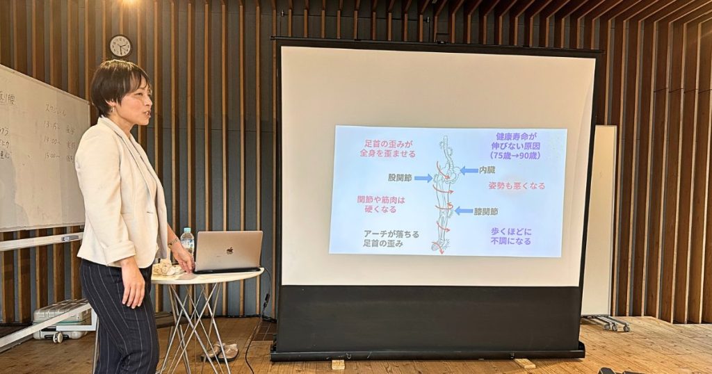 なぜ、足首が傾くだけで体全体がゆがんでくるのかを、丁寧に解説してもらいました。