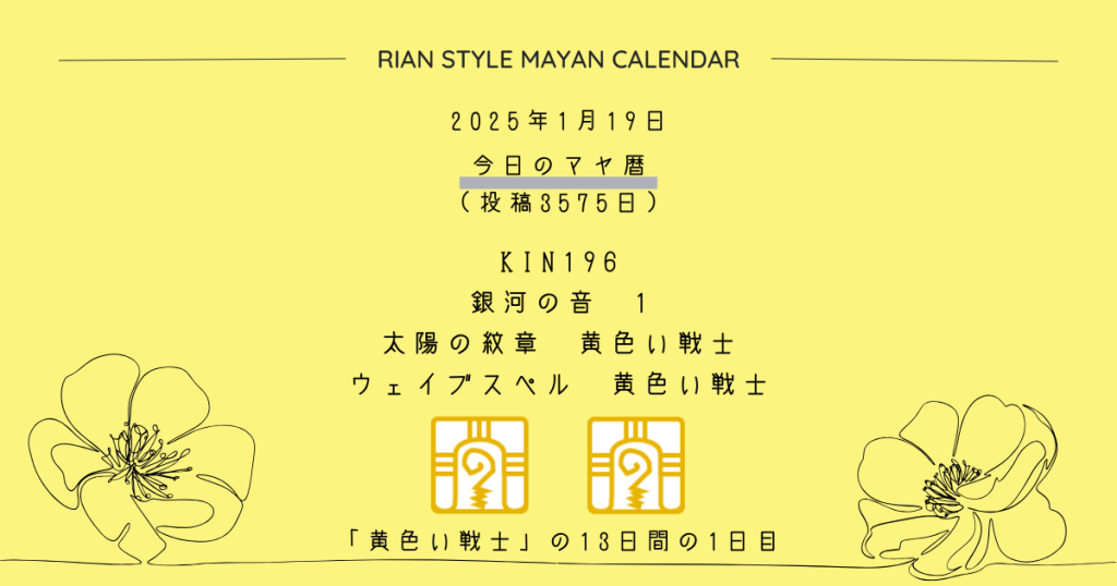 【今日のマヤ暦】1月19日 KIN196 音1 黄色い戦士 – 黄色い戦士
