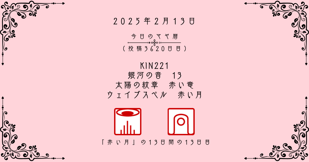 今日は「赤い竜」の日です。20の紋章で一番最初なのが「赤い竜」なので、スタートという意味もあります。明日は「白い風」の13日間が始まる「音1」のスタートです。今日、明日と何かをスタートさせてみるといいかもですね。