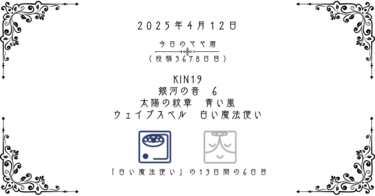 【今日のマヤ暦】4月12日 KIN19(絶対拡張kin) 音6 青い嵐 – 白い魔法使い