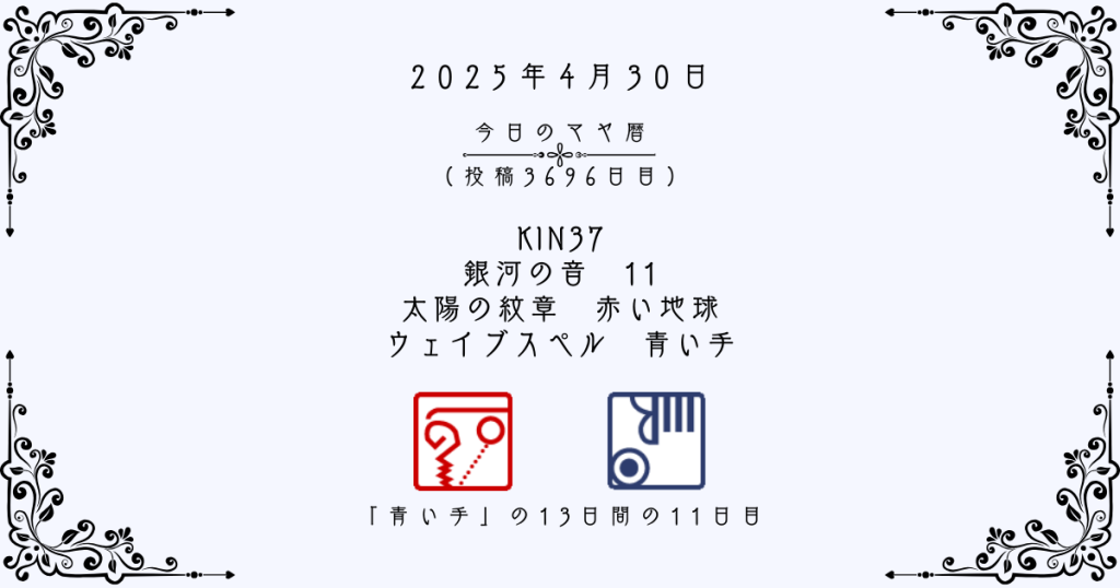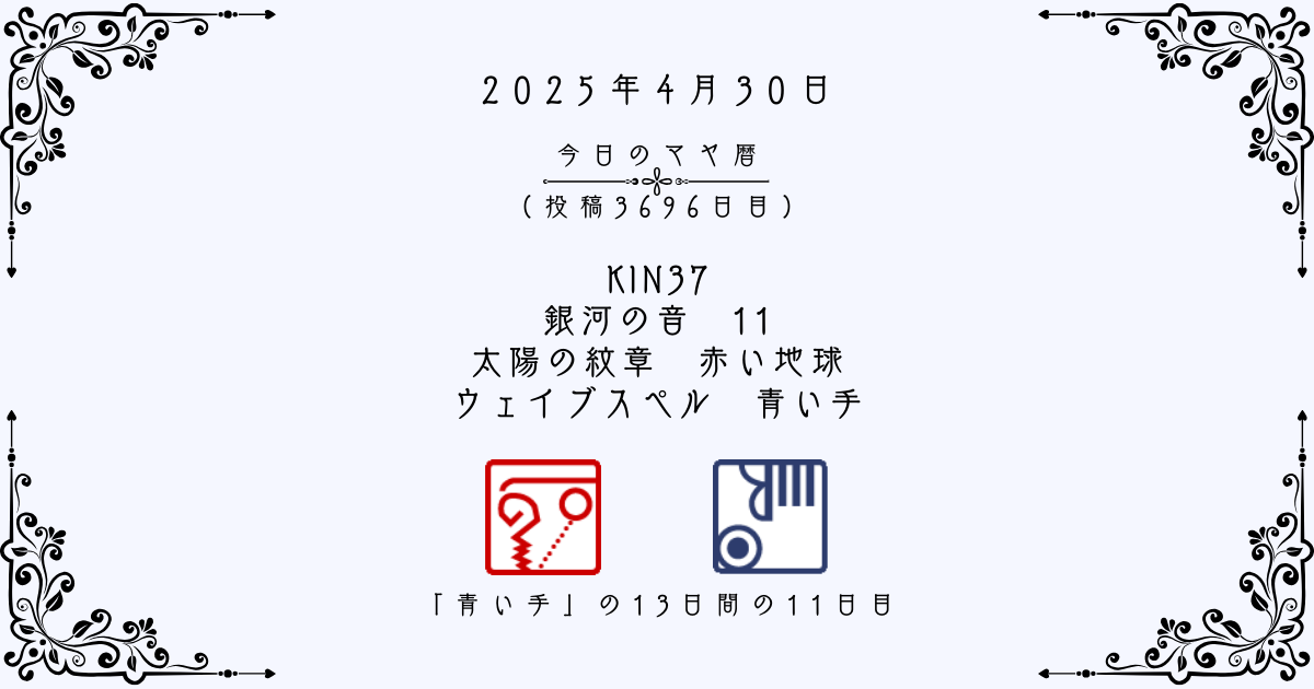 【今日のマヤ暦】4月30日 KIN37 音11 赤い地球 – 青い手
