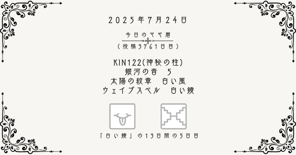 今日は「白い風」の日です。「精神性、スピリット(霊)」「伝達者、感動を伝える」という意味があります。コミュニケーションが課題になります。しっかりと言葉を伝えることを意識してください。