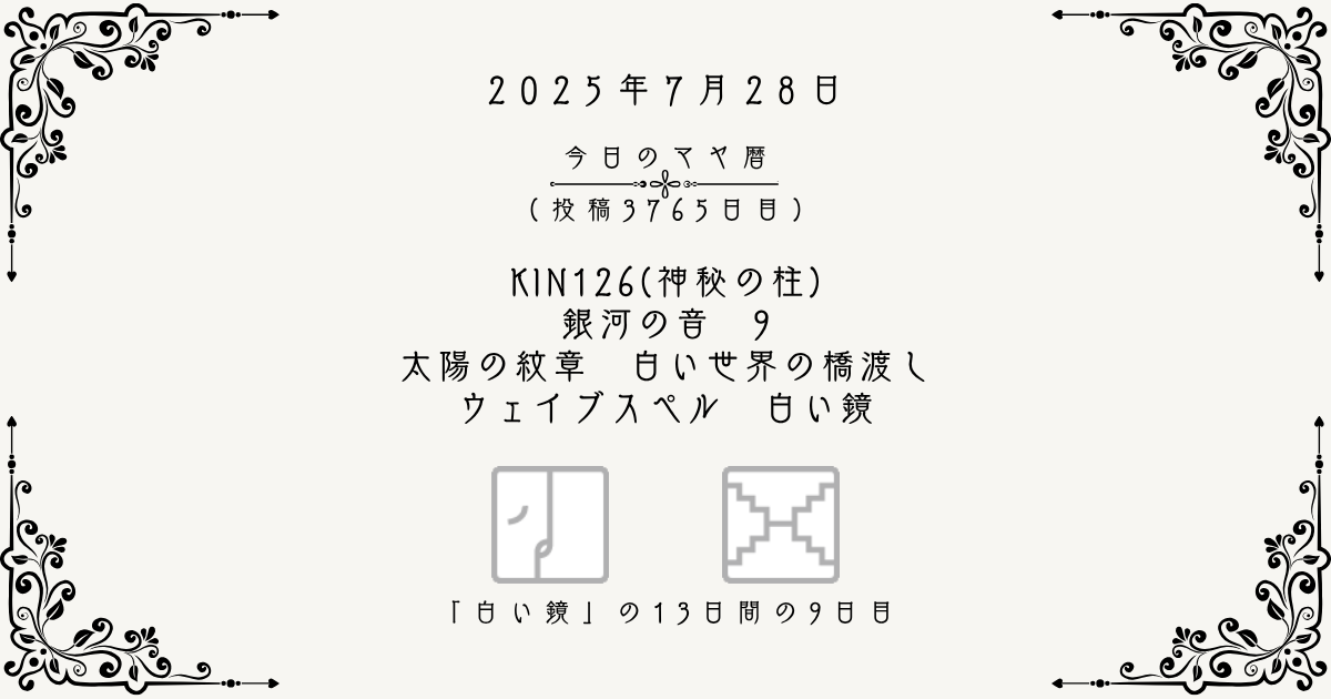 【今日のマヤ暦】7月28日 KIN126(神秘の柱) 音9 白い世界の橋渡し – 白い鏡