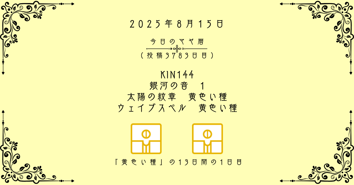 【今日のマヤ暦】8月15日 KIN144 音1 黄色い種 – 黄色い種