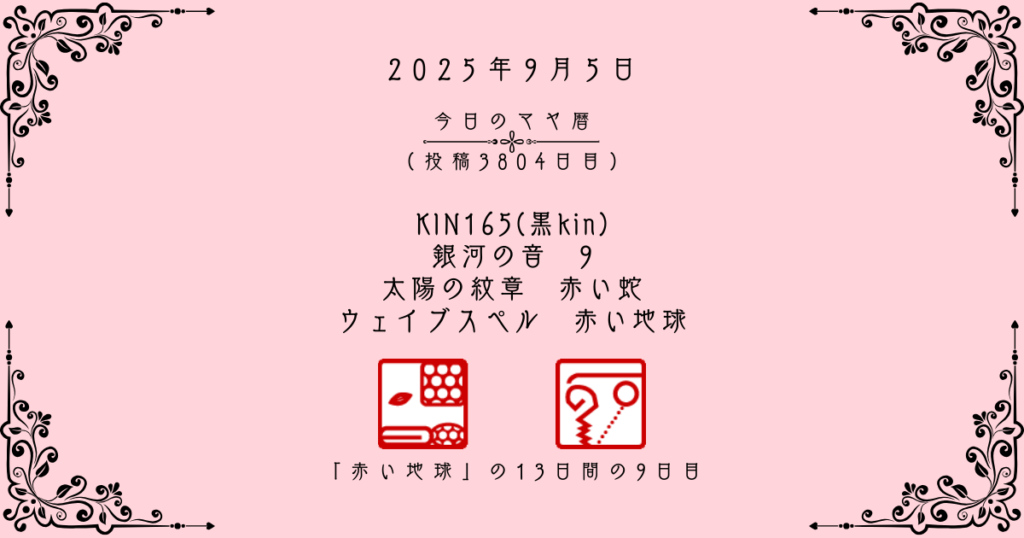 【今日のマヤ暦】9月5日 KIN165(黒kin) 音9 赤い蛇 – 赤い地球
