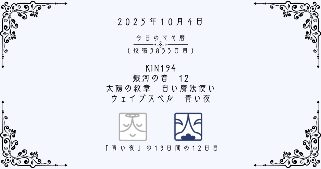【今日のマヤ暦】10月4日 KIN194 音12 白い魔法使い – 青い夜