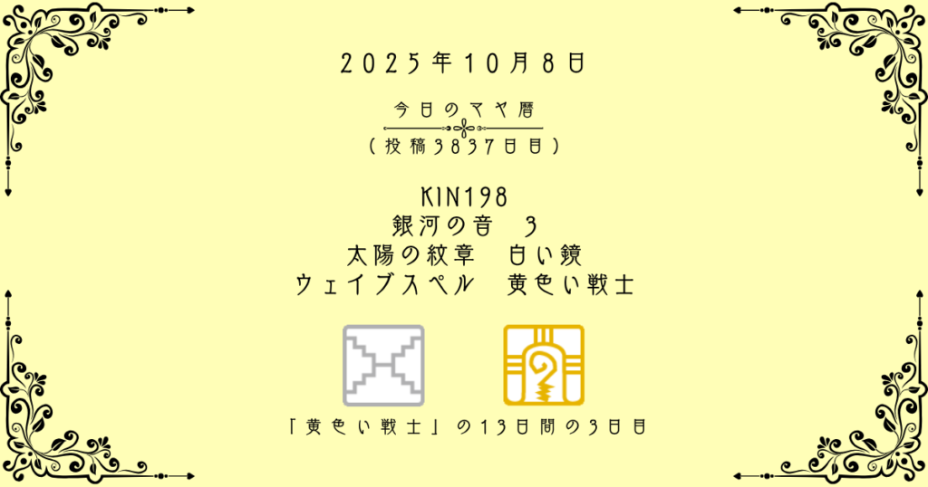 【今日のマヤ暦】10月8日 KIN198 音3 白い鏡 – 黄色い戦士