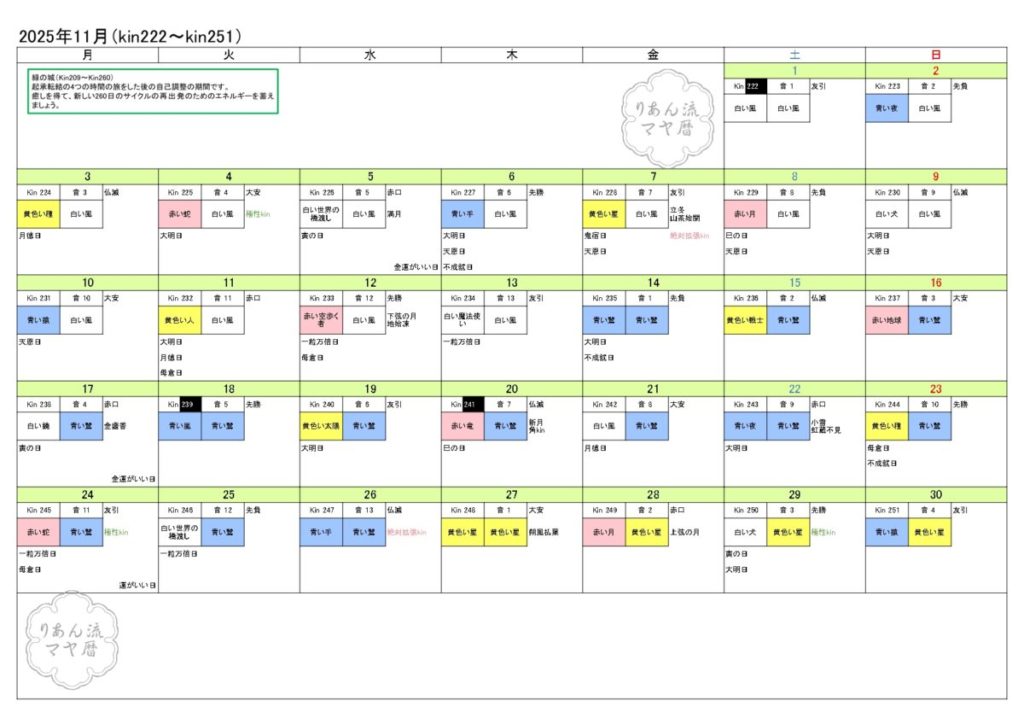 2025年11月マヤ暦カレンダー