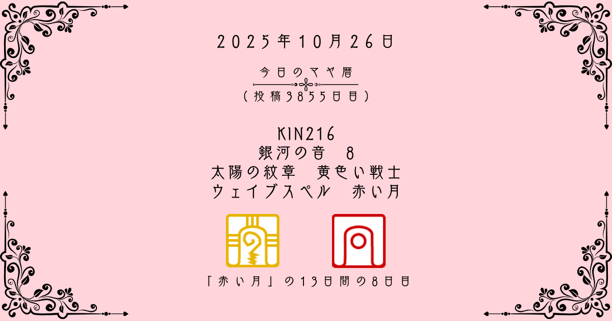 【今日のマヤ暦】10月26日 KIN216 音8 黄色い戦士 – 赤い月