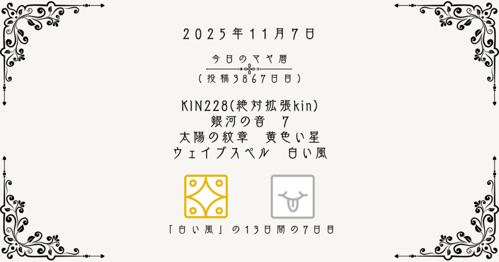 さらに今日は、エネルギーが増幅される「絶対拡張KIN」の日でもあります。もしあなたが広めたいことや、宣伝したいアイデアがあるなら、ぜひ今日実行に移してみてください。そのメッセージは力強く遠くまで届くでしょう。