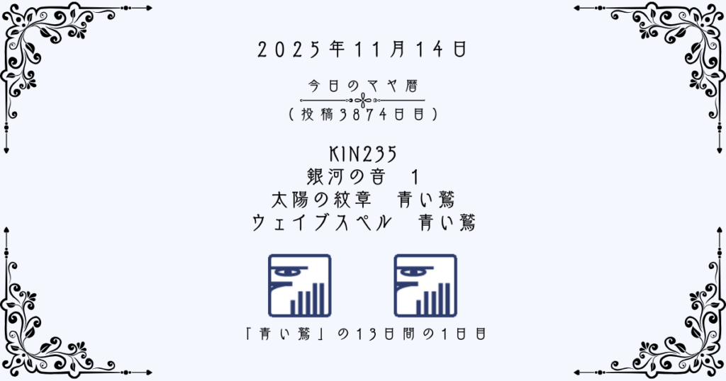 「青い鷲」の13日間(KIN235~KIN247)は、将来的なビジョンを見出すこと、そして客観的に自分を観察することがテーマとなります。