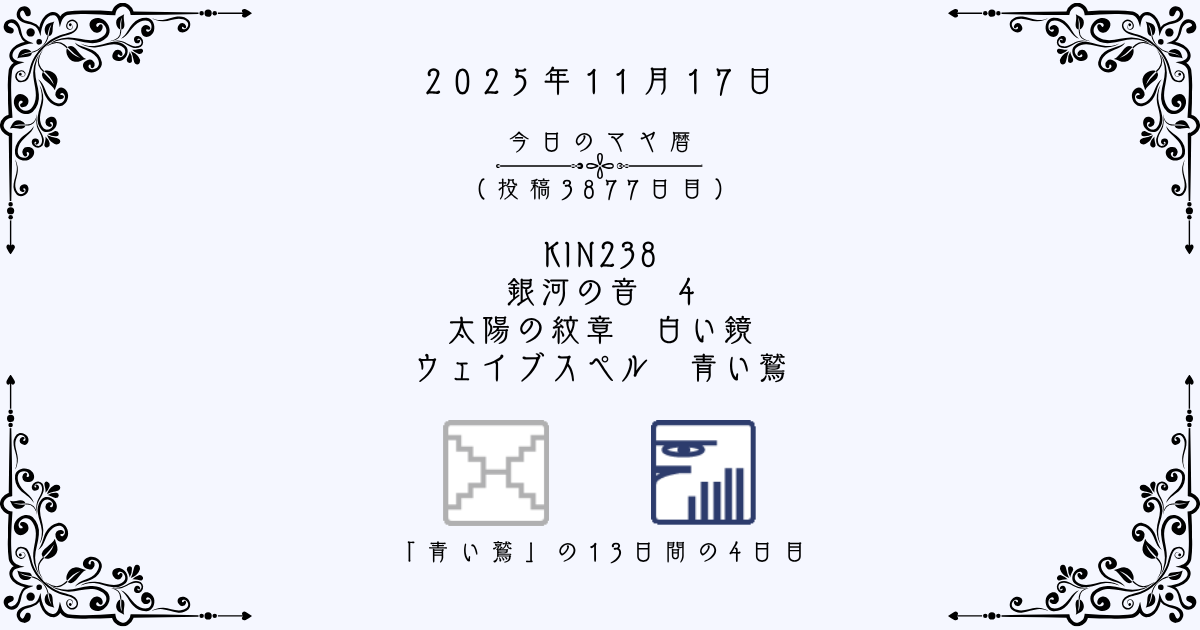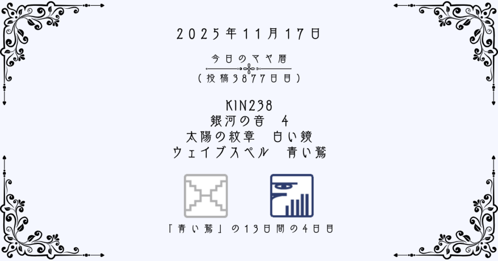 「青い鷲」の13日間(KIN235~KIN247)は、将来的なビジョンを見出すこと、そして客観的に自分を観察することがテーマとなります。