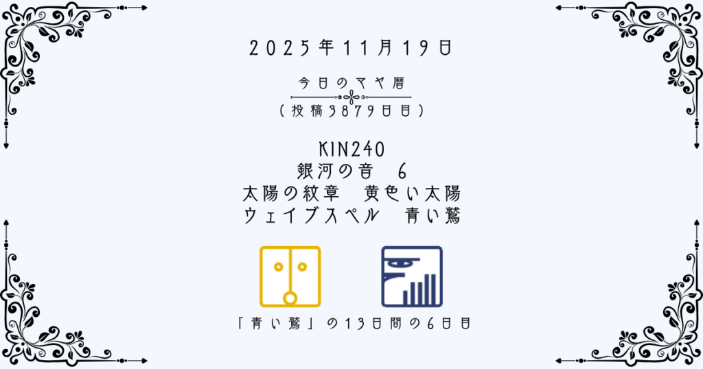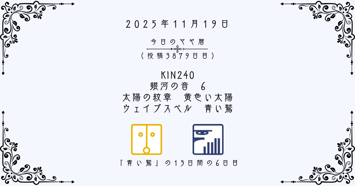 【今日のマヤ暦】11月19日 KIN240 音6 黄色い太陽 – 青い鷲