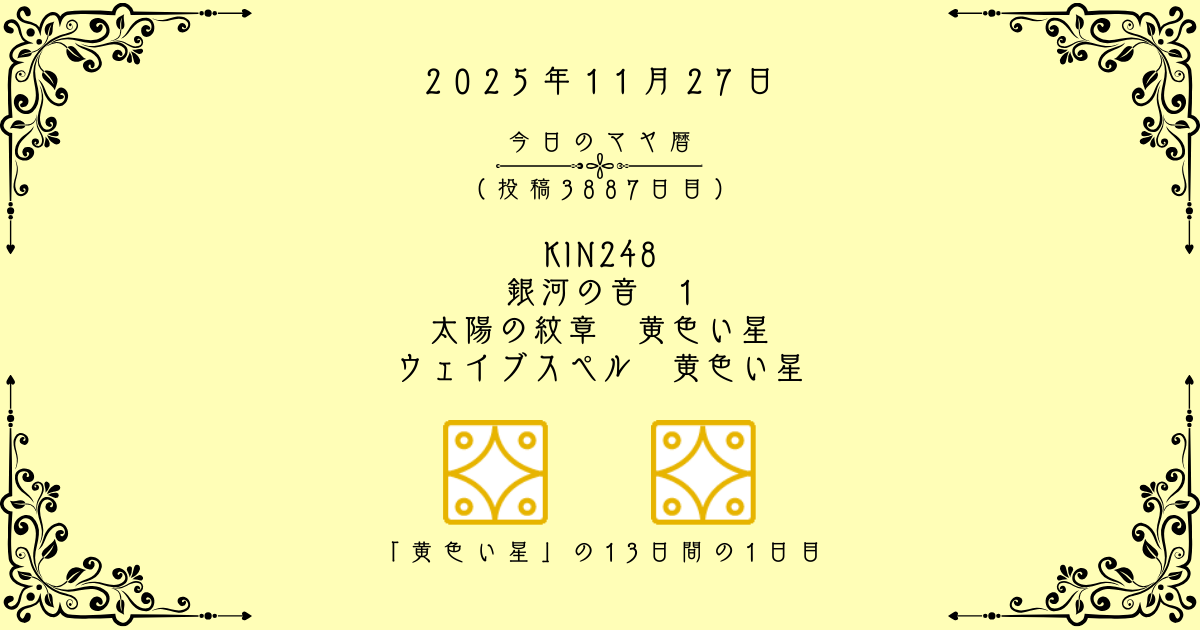 「黄色い星」の13日間(KIN248~KIN260)は、260日マヤ暦サイクルの締めくくりとなる最後のウェイブスペルです。