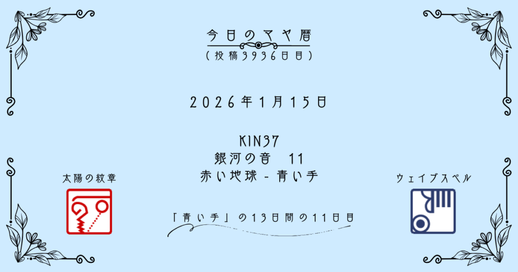 【今日のマヤ暦】1月15日 KIN37 音11 赤い地球 – 青い手
