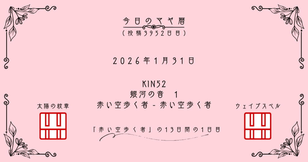 今日は「赤い空歩く者」の日です。この紋章には「体験や経験を重視する」という意味があり、自ら現場へ赴くことで道が開ける性質を持っています。理屈で考えるよりも、まずはその場に立って肌で感じてみることを大切にしてください。