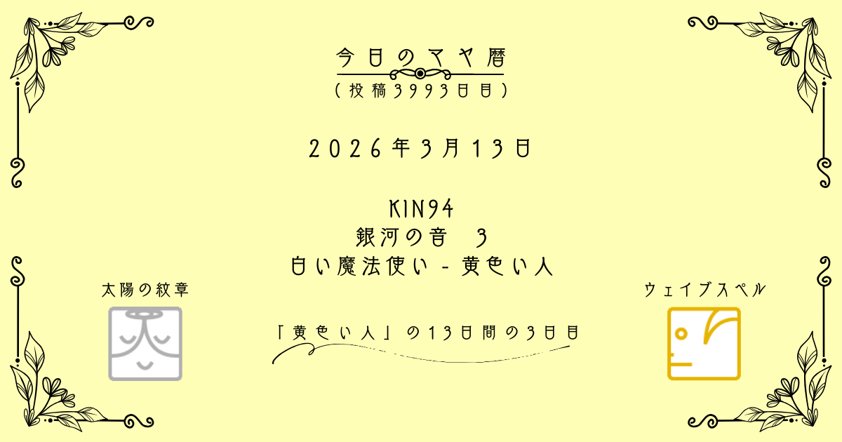 「黄色い人」の13日(kin92~kin104)の期間は、自分の進むべき道はどこにあるのか、改めて自分自身に問いかけ、内面を深く見つめ直す期間です。