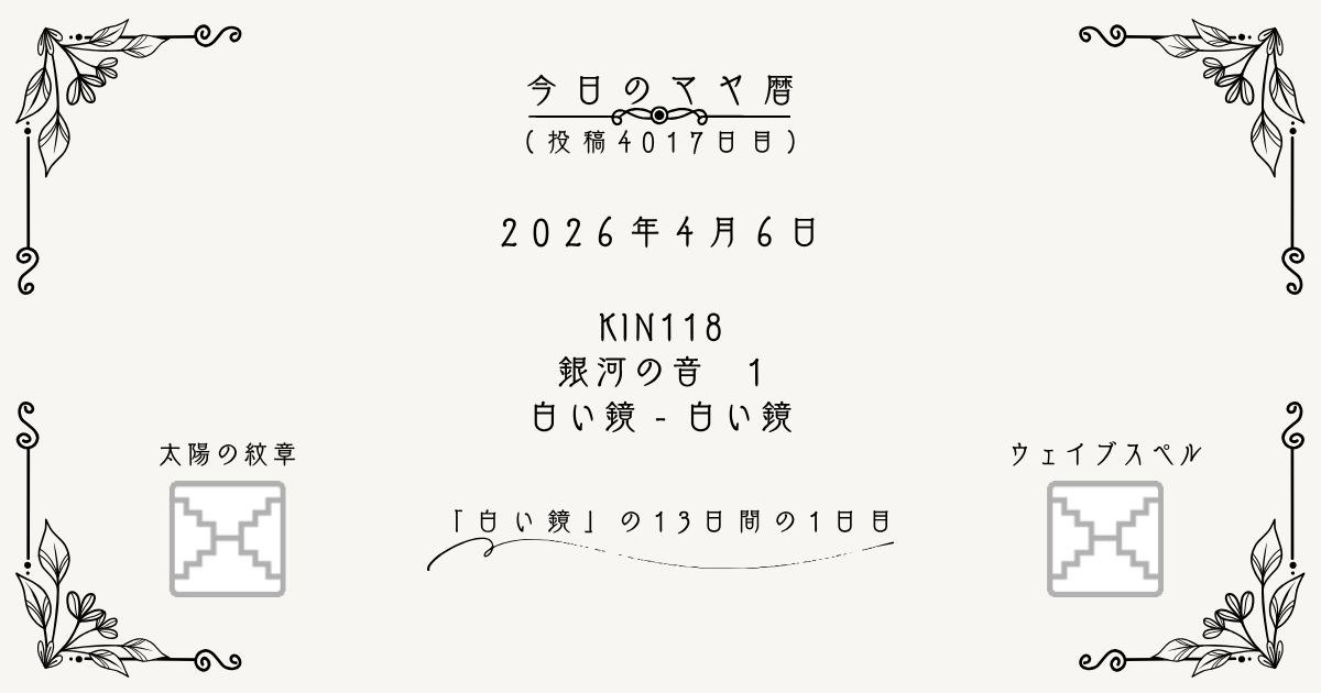 「白い鏡」の13日(kin1118~kin130)の期間は、ずっと変わることのない大切なものを心に置いて、目の前の出来事は自分の心を映し出す鏡なのだと感じながら過ごしてみましょう。