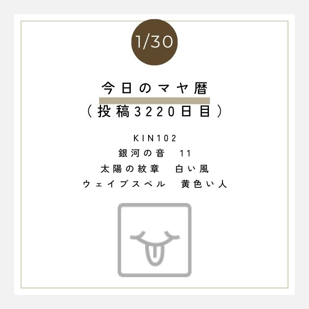 1月30日【今日のマヤ暦】KIN102 音11 白い風 – 黄色い人