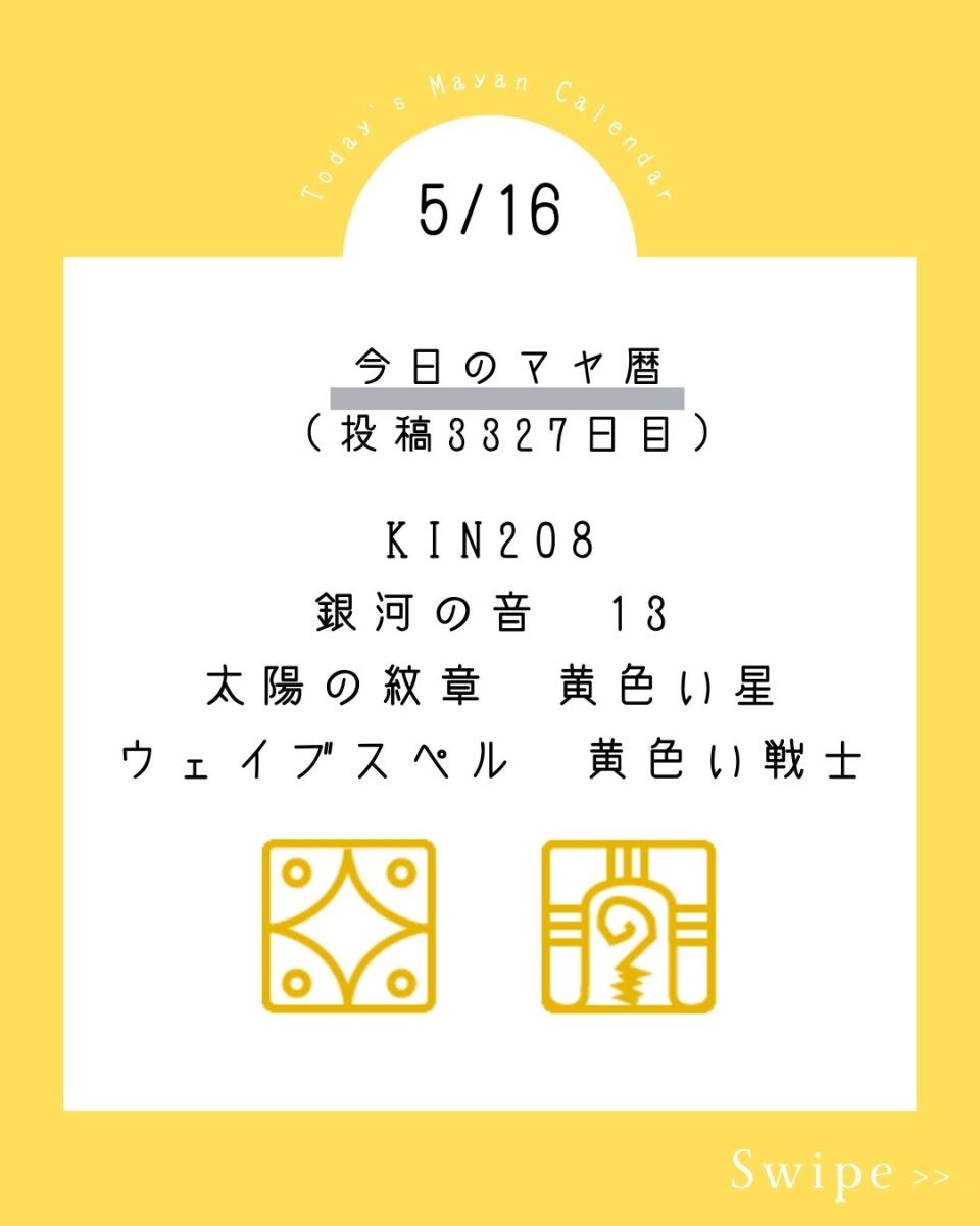 5月16日【今日のマヤ暦】KIN208 音13 黄色い星 – 黄色い戦士