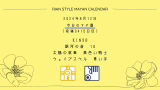 今日のマヤ暦 8月12日【今日のマヤ暦】KIN36 音10 黄色い戦士 – 青い手 こんにちは、マヤ暦鑑定歴13年目の りあん です。今日一日の過ごし方「チェックポイント」をお届けします。マヤ暦は、毎日それぞれ違ったエネルギーが流れているという考え方をします。そのエネルギーを意識して生きることで、シンクロを呼び、リズムに乗... 2024.08.12 今日のマヤ暦