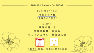こんにちは、マヤ暦鑑定歴13年目の りあん です。今日一日の過ごし方「チェックポイント」をお届けします。マヤ暦は、毎日それぞれ違ったエネルギーが流れているという考え方をします。そのエネルギーを意識して生きることで、シンクロを呼び、リズムに乗...