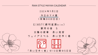 今日のマヤ暦 【今日のマヤ暦】9月2日 KIN57(絶対拡張kin) 音5 赤い地球 – 赤い空歩く者 こんにちは、マヤ暦鑑定歴13年目の りあん です。今日一日の過ごし方「チェックポイント」をお届けします。マヤ暦は、毎日それぞれ違ったエネルギーが流れているという考え方をします。そのエネルギーを意識して生きることで、シンクロを呼び、リズムに乗... 2024.09.02 今日のマヤ暦