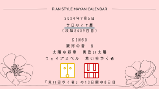 今日のマヤ暦 【今日のマヤ暦】9月5日 KIN60 音8 黄色い太陽 – 赤い空歩く者 こんにちは、マヤ暦鑑定歴13年目の りあん です。今日一日の過ごし方「チェックポイント」をお届けします。マヤ暦は、毎日それぞれ違ったエネルギーが流れているという考え方をします。そのエネルギーを意識して生きることで、シンクロを呼び、リズムに乗... 2024.09.05 今日のマヤ暦