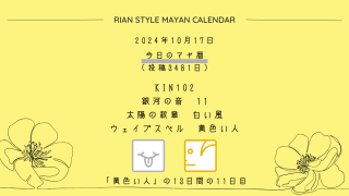 こんにちは、マヤ暦鑑定歴13年目の りあん です。今日一日の過ごし方「チェックポイント」をお届けします。マヤ暦は、毎日それぞれ違ったエネルギーが流れているという考え方をします。そのエネルギーを意識して生きることで、シンクロを呼び、リズムに乗...