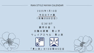 今日のマヤ暦 【今日のマヤ暦】1月10日 KIN187 音5 青い手 – 青い夜 こんにちは、マヤ暦鑑定歴13年目の りあん です。「今日のマヤ暦」を日々活用していただきありがとうございます!その悩み、原因がわからないまま、このまま放っておきますか?見て見ぬふりをしていても、心のモヤモヤはいつか大きくなって、あなたの未来... 2025.01.10 今日のマヤ暦