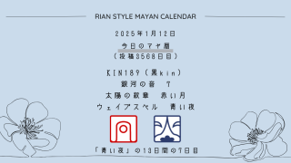 今日のマヤ暦 【今日のマヤ暦】1月12日 KIN189(黒kin) 音7 赤い月 – 青い夜 こんにちは、マヤ暦鑑定歴13年目の りあん です。「今日のマヤ暦」を日々活用していただきありがとうございます!その悩み、原因がわからないまま、このまま放っておきますか?見て見ぬふりをしていても、心のモヤモヤはいつか大きくなって、あなたの未来... 2025.01.12 今日のマヤ暦