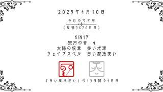 今日のマヤ暦 【今日のマヤ暦】4月10日 KIN17 音4 赤い地球 – 白い魔法使い こんにちは、マヤ暦鑑定歴13年目の りあん です。「今日のマヤ暦」を日々活用していただきありがとうございます!今日一日の過ごし方「チェックポイント」をお届けします。マヤ暦は、毎日それぞれ違ったエネルギーが流れているという考え方をします。その... 2025.04.10 今日のマヤ暦
