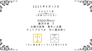 今日のマヤ暦 【今日のマヤ暦】4月13日 KIN20(角kin) 音7 黄色い太陽 – 白い魔法使い こんにちは、マヤ暦鑑定歴13年目の りあん です。「今日のマヤ暦」を日々活用していただきありがとうございます!今日一日の過ごし方「チェックポイント」をお届けします。マヤ暦は、毎日それぞれ違ったエネルギーが流れているという考え方をします。その... 2025.04.13 今日のマヤ暦