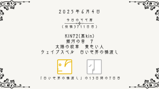 今日のマヤ暦 【今日のマヤ暦】6月4日 KIN72(黒kin) 音7 黄色い人 – 白い世界の橋渡し こんにちは、マヤ暦鑑定歴13年目の りあん です。「今日のマヤ暦」を日々活用していただきありがとうございます!今日一日の過ごし方「チェックポイント」をお届けします。マヤ暦は、毎日それぞれ違ったエネルギーが流れているという考え方をします。その... 2025.06.04 今日のマヤ暦