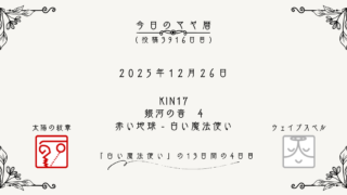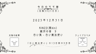 今日のマヤ暦 【今日のマヤ暦】12月31日 KIN22(黒kin) 音9 白い風 – 白い魔法使い