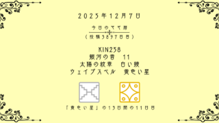 今日のマヤ暦 【今日のマヤ暦】12月7日 KIN258 音11 白い鏡 – 黄色い星 こんにちは、マヤ暦鑑定歴13年目の りあん です。「今日のマヤ暦」を日々活用していただきありがとうございます!今日一日の過ごし方「チェックポイント」をお届けします。マヤ暦は、毎日それぞれ違ったエネルギーが流れているという考え方をします。その... 2025.12.07 今日のマヤ暦