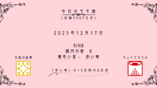 今日のマヤ暦 【今日のマヤ暦】12月17日 KIN8 音8 黄色い星 – 赤い竜 こんにちは、マヤ暦鑑定歴13年目の りあん です。「今日のマヤ暦」を日々活用していただきありがとうございます!今日一日の過ごし方「チェックポイント」をお届けします。マヤ暦は、毎日それぞれ違ったエネルギーが流れているという考え方をします。その... 2025.12.17 今日のマヤ暦