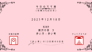 今日のマヤ暦 【今日のマヤ暦】12月18日 KIN9 音9 赤い月 – 赤い竜 こんにちは、マヤ暦鑑定歴13年目の りあん です。「今日のマヤ暦」を日々活用していただきありがとうございます!今日一日の過ごし方「チェックポイント」をお届けします。マヤ暦は、毎日それぞれ違ったエネルギーが流れているという考え方をします。その... 2025.12.18 今日のマヤ暦