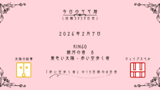 今日のマヤ暦 【今日のマヤ暦】2月7日 KIN60 音8 黄色い太陽 – 赤い空歩く者 こんにちは、マヤ暦鑑定歴13年目の りあん です。「今日のマヤ暦」を日々活用していただきありがとうございます!今日一日の過ごし方「チェックポイント」をお届けします。マヤ暦は、毎日それぞれ違ったエネルギーが流れているという考え方をします。その... 2026.02.07 今日のマヤ暦