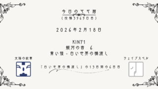 今日のマヤ暦 【今日のマヤ暦】2月18日 KIN71 音6 青い猿 – 白い世界の橋渡し こんにちは、マヤ暦鑑定歴13年目の りあん です。「今日のマヤ暦」を日々活用していただきありがとうございます!今日一日の過ごし方「チェックポイント」をお届けします。マヤ暦は、毎日それぞれ違ったエネルギーが流れているという考え方をします。その... 2026.02.18 今日のマヤ暦