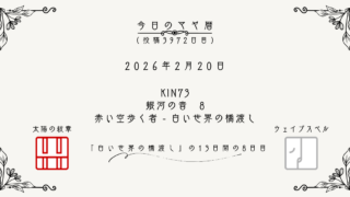 今日のマヤ暦 【今日のマヤ暦】2月20日 KIN73 音8 赤い空歩く者 – 白い世界の橋渡し こんにちは、マヤ暦鑑定歴13年目の りあん です。「今日のマヤ暦」を日々活用していただきありがとうございます!今日一日の過ごし方「チェックポイント」をお届けします。マヤ暦は、毎日それぞれ違ったエネルギーが流れているという考え方をします。その... 2026.02.20 今日のマヤ暦