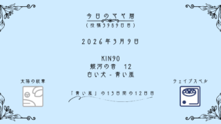 今日のマヤ暦 【今日のマヤ暦】3月9日 KIN90 音12 白い犬 – 青い嵐 こんにちは、マヤ暦鑑定歴13年目の りあん です。「今日のマヤ暦」を日々活用していただきありがとうございます!今日一日の過ごし方「チェックポイント」をお届けします。マヤ暦は、毎日それぞれ違ったエネルギーが流れているという考え方をします。その... 2026.03.09 今日のマヤ暦